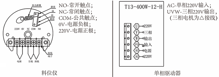 * 振動器可用PLC或時間繼電器設(shè)置為通電1min,斷電10min;